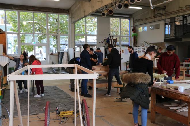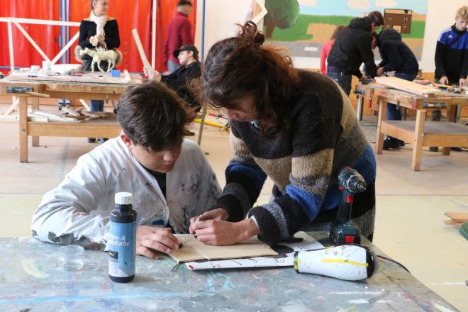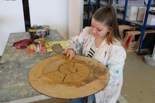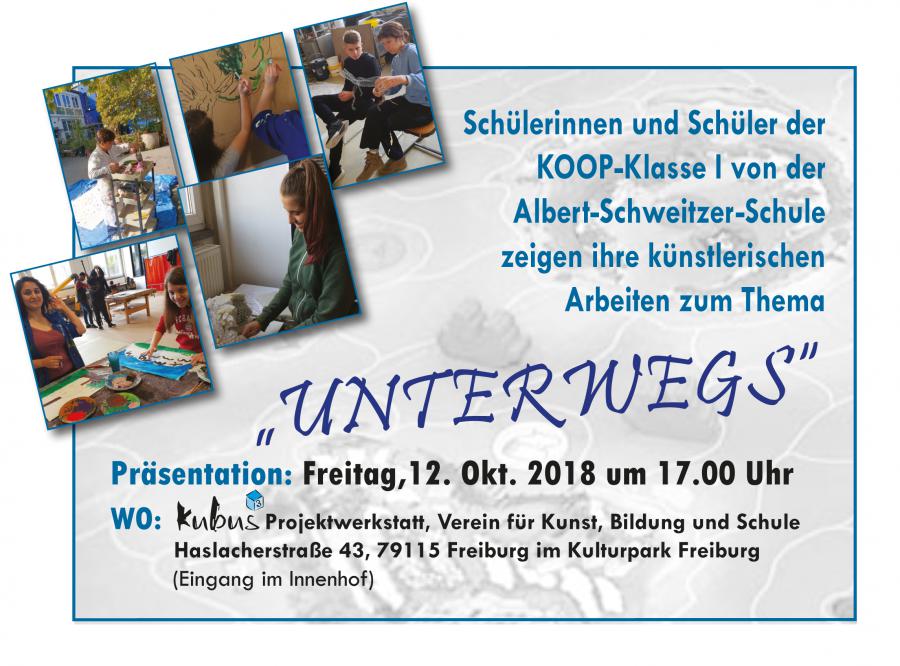 Das erste Kompaktprojekt im neuen Schuljahr wurde mit der Kooperationsklasse I der Albert-Schweitzer-Schule II mit 16 Jugendlichen in der Kubus³ Projektwerkstatt durchgeführt. Die Werkstattwoche am Anfang des neuen Schuljahres bot der „neuen Klasse“ eine tolle Möglichkeit, sich untereinander kennen zu lernen und bei sich selber das ein oder andere unentdeckte Talent oder Interesse beim künstlerischen und handwerklichen Schaffen zu entdecken. Unter dem Motto „UNTERWEGS“ entwickelten die Schülerinnen und Schüler, begleitet von zwei Künstlern und einem Schreiner ihre eigenen Ideen und Assoziationen, die sie mit dem Thema verknüpften. Im Laufe der Woche entstanden sowohl sehr persönliche Einzelarbeiten als auch Partnerarbeiten. Es wurde mit unterschiedlichen Materialien gearbeitet und jede/r Schüler*in wählte das Material aus, mit dem sie / er gerne arbeiten wollte (Holz, Ton, Mosaik, Metall, Stein, Farbe, Textilien). Im Rahmen einer kleinen Vernissage wurden die Werke und ein kleiner Film mit Impressionen aus dem Projekt am Ende der Woche öffentlich präsentiert. Viele Eltern kamen, um sich die originellen und sehr spannenden Arbeiten ihrer Kinder anzusehen. Stolze Gesichter waren durchaus berechtigt und die positive Resonanz der Schüler*innen, des Klassenlehrers und auch der Eltern waren eine schöne Anerkennung für uns alle.
